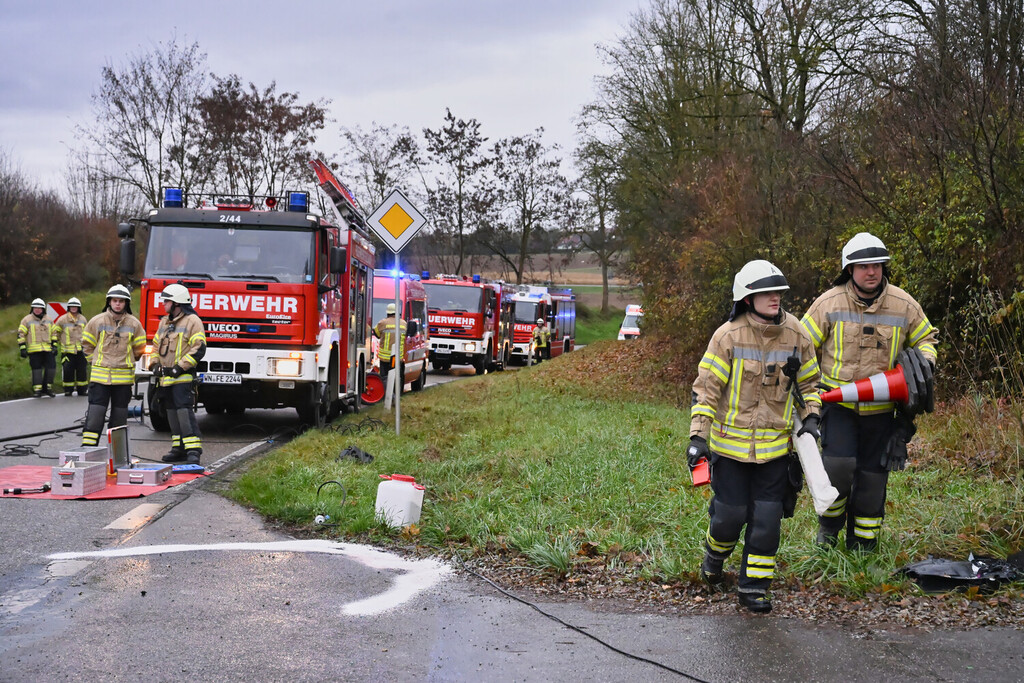 Während des Einsatzes musste die L1197 in diesem Bereich für beide Fahrtrichtungen gesperrt werden. Im Einsatz waren insgesamt 32 Einsatzkräfte mit 5 Fahrzeugen sowie Polizei und Rettungsdienst.